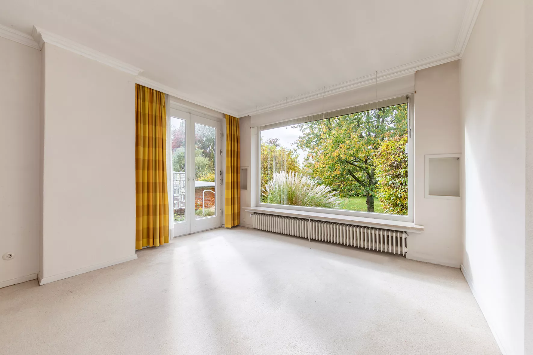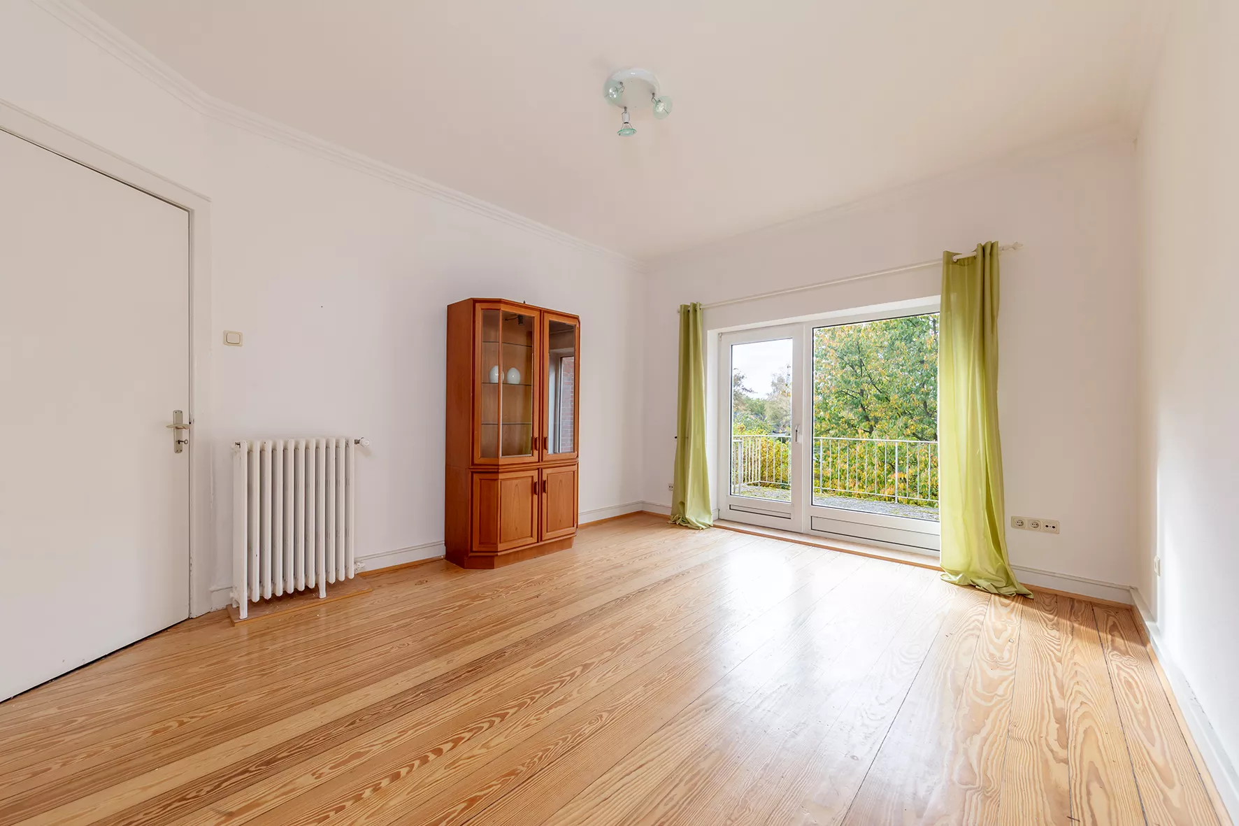 Großzügiger Wohn- und Essbereich mit Zugang zur Terrasse | Große Fenster | Pitchpinedielen | Originale Holztreppe | Wannenbad im Obergeschoss und ein zusätzliches Duschbad im Kellergeschoss | Gaszentralheizung aus dem Jahr 2020 | Grundstück nach Westen ausgerichtet