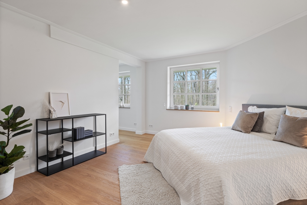 Hohe Decken | Lichtdurchfluteter Wohnbereich | Bad en Suite | Ankleide | Kamin | Balkon mit Blick ins Grüne