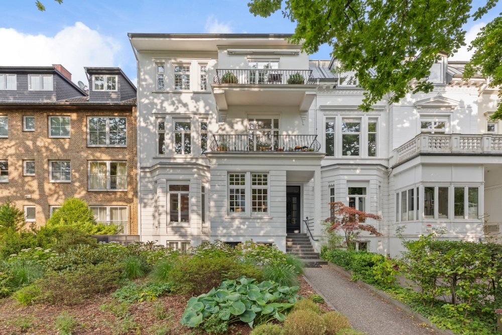 Fußläufig zur Außenalster: Das Haus verfügt über fünf Wohneinheiten und besticht mit hohen Decken und originalen Stilelementen.