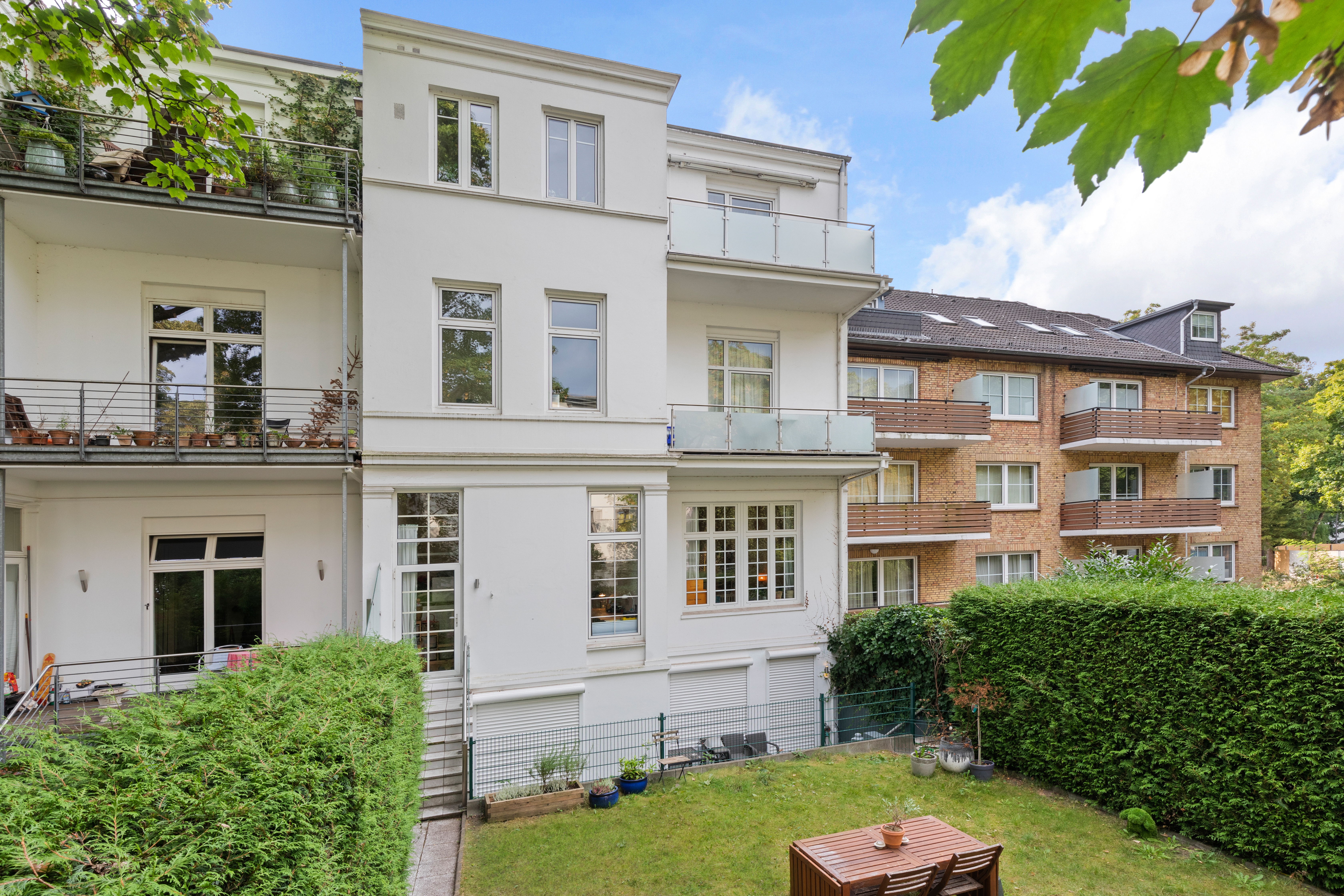 Ein Hamburger Original geprägt durch erhaltene Stilelemente, wie hohe Decken mit Stuck und Rosetten, geputzte Wände, kassettierte Holztüren, hochwertiges Eichenparkett, Hamburger Fußleisten.Die Wohnung im Hochparterre mit ca. 117 m² Wohn- und Nutzfläche verfügt über drei Zimmer und eine Terrasse mit Zugang in den Garten. Die jährliche Nettokaltmiete beträgt € 23.878,68.