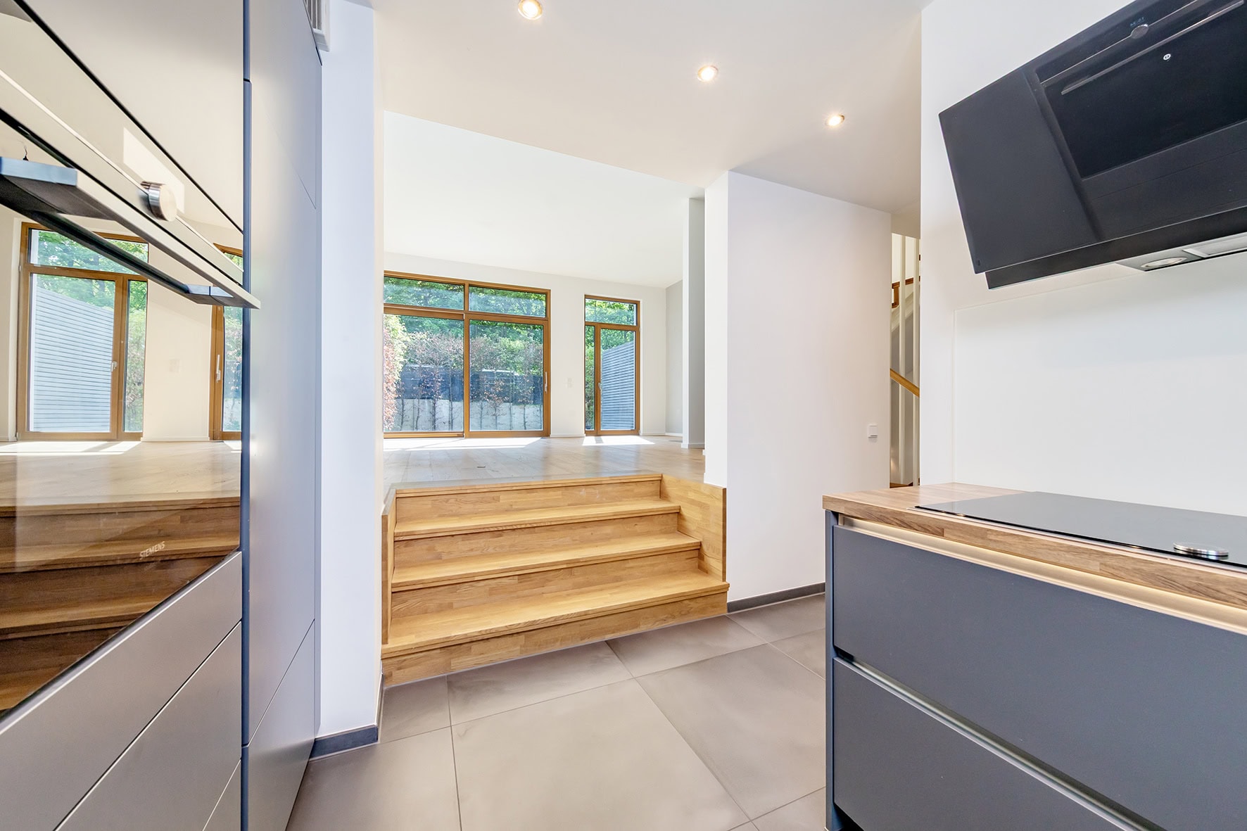 Das modern gestaltete Haus mit Garten ist nach Südwesten ausgerichtet und eignet sich ideal für Familien.
