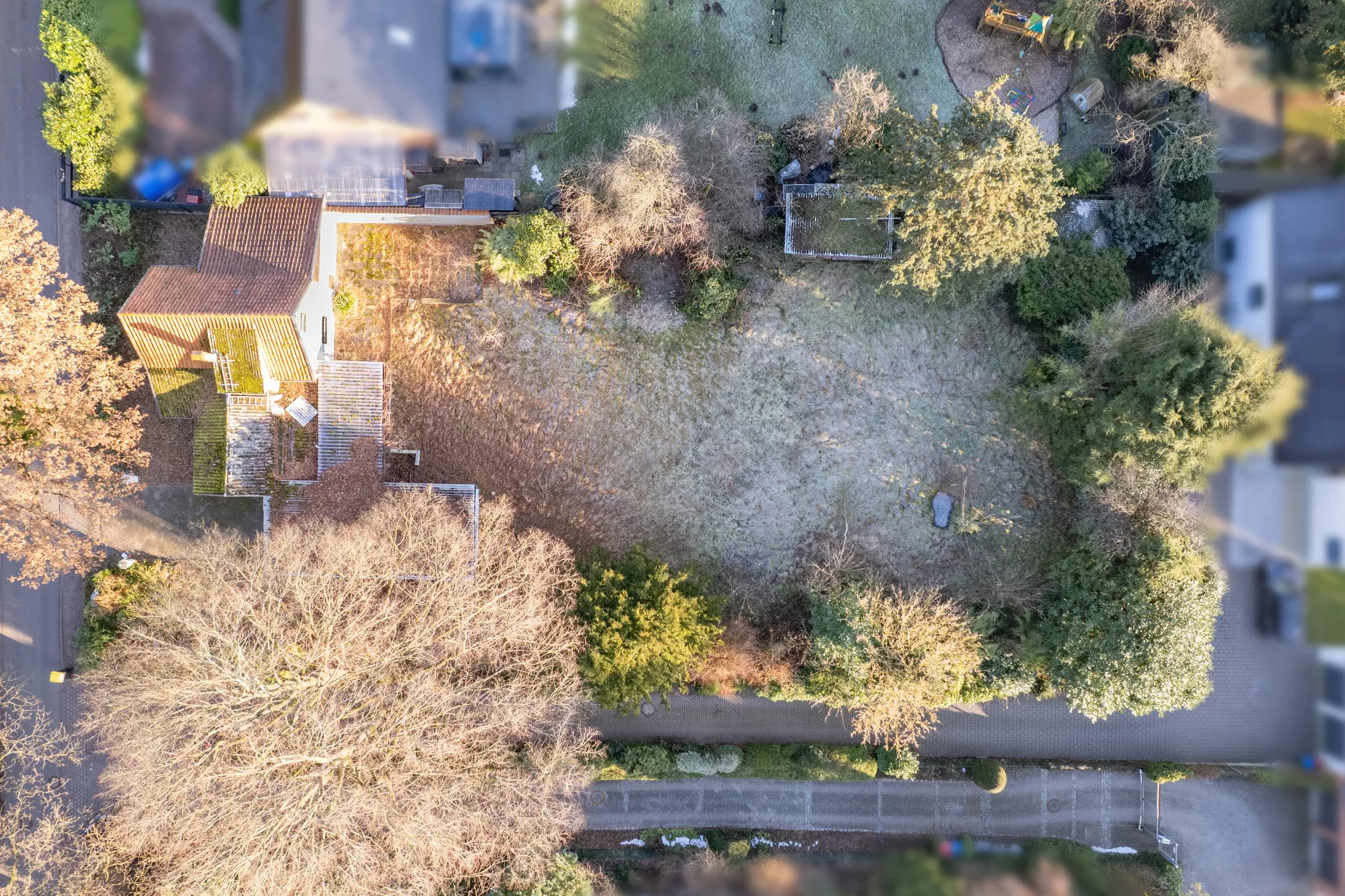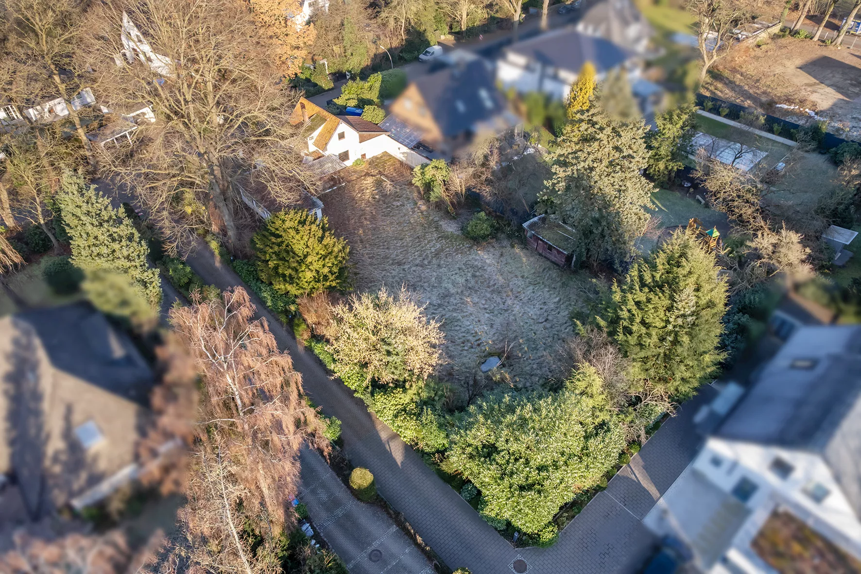 Das ca. 1.425 m² große Grundstück ist nach Süden ausgerichtet. Das Grundstück ist mit einem, zum Abriss bestimmten, Altbestand bebaut.