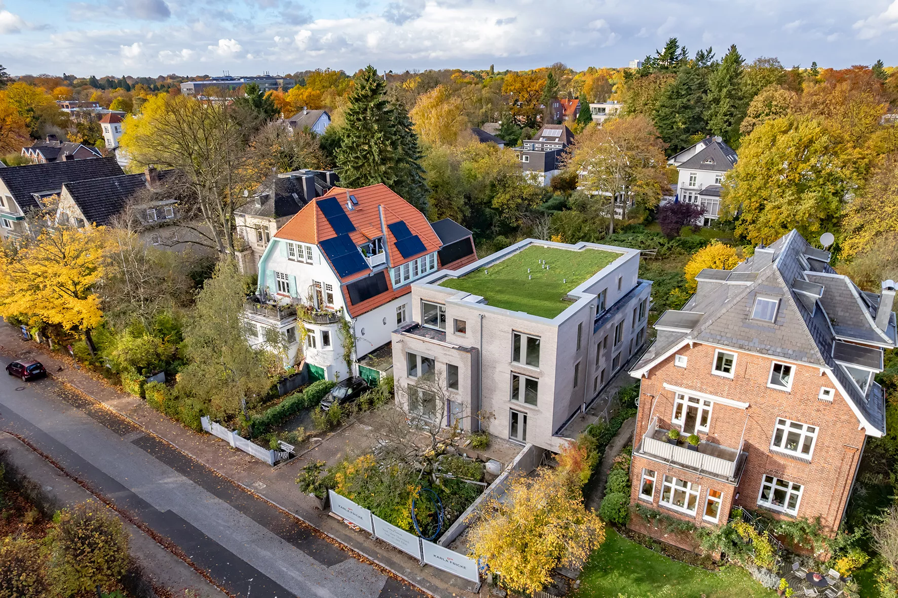 Dieser individuelle Neubau mit 5 Wohnungen und hochwertiger Architektur im Herzen von Othmarschen. Durch die direkte Nachbarschaft zum Jenischpark und der beliebten Waitzstraße ist die Lage unvergleichlich. Das ca. 1.169 m² große Grundstück wird von Landschaftsarchitekten gestaltet und bietet den perfekten Ort für schöne und erholsame Momente - sonnige Stunden auf der Terrasse oder dem Balkon genießen Sie hier mit Blick ins Grüne.