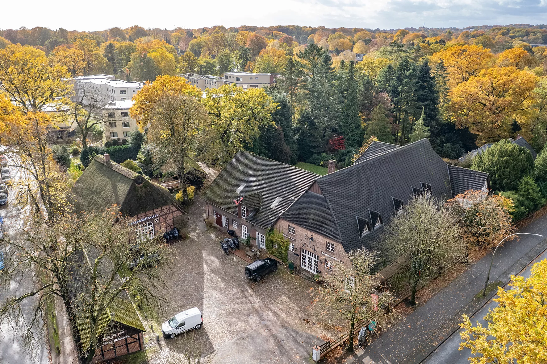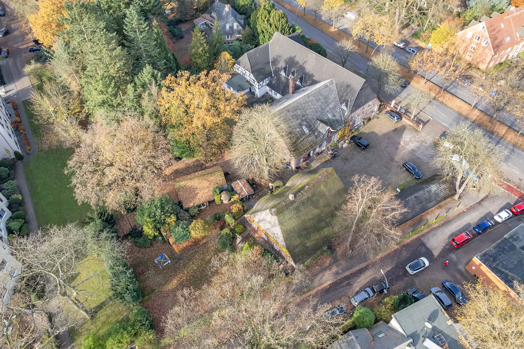 Denkmalgeschütztes Ensemble bestehend aus 3 Häusern mit 6 Laden- und einer Wohneinheit sowie einem Wohngebäude | Pitchpinedielen sowie teils Steinböden | Historische Elemente, Sichtbalken und Holzvertäfelungen | Insgesamt ca. 1.890 m² Gewerbe-, Wohn- und Nutzfläche auf einem ca. 6.317 m² großen Grundstück | Ein Baugrundstück von ca. 1.400 m² wird abgetrennt | Gartenfläche mit Südwest-Ausrichtung
