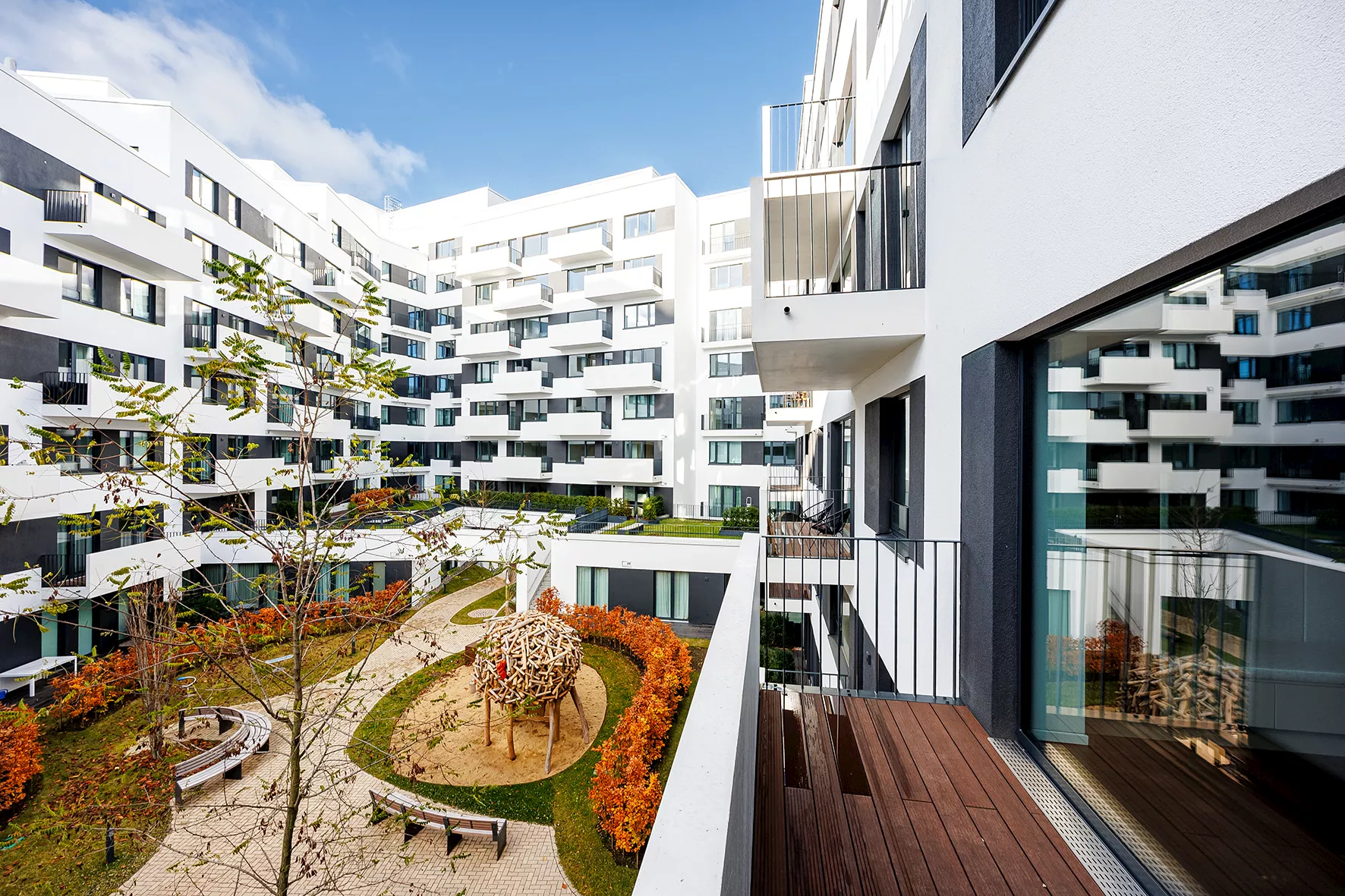 In unmittelbarer Nähe zum Westfield Center präsentiert sich die Neubauwohnung im Erstbezug und besticht durch hauseigene Communityflächen sowie einen parkähnlichen Innenhof.
