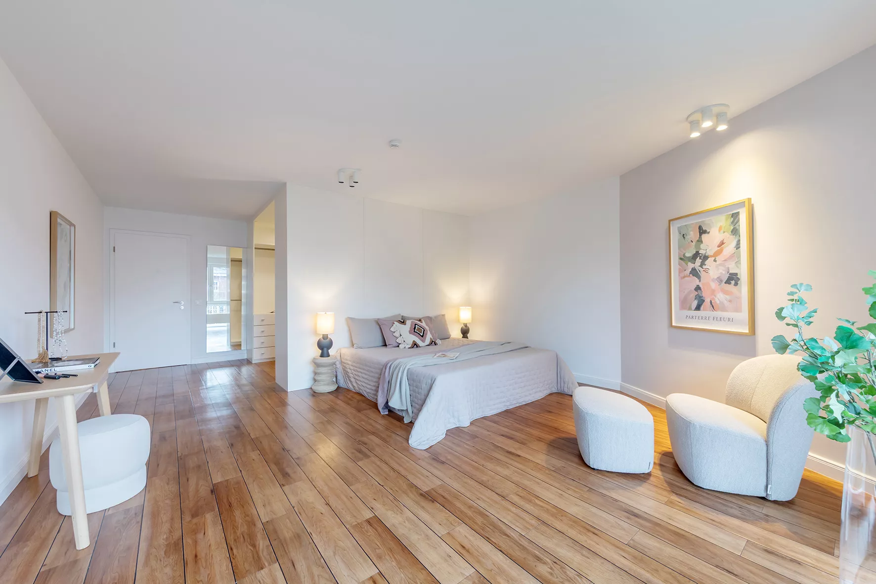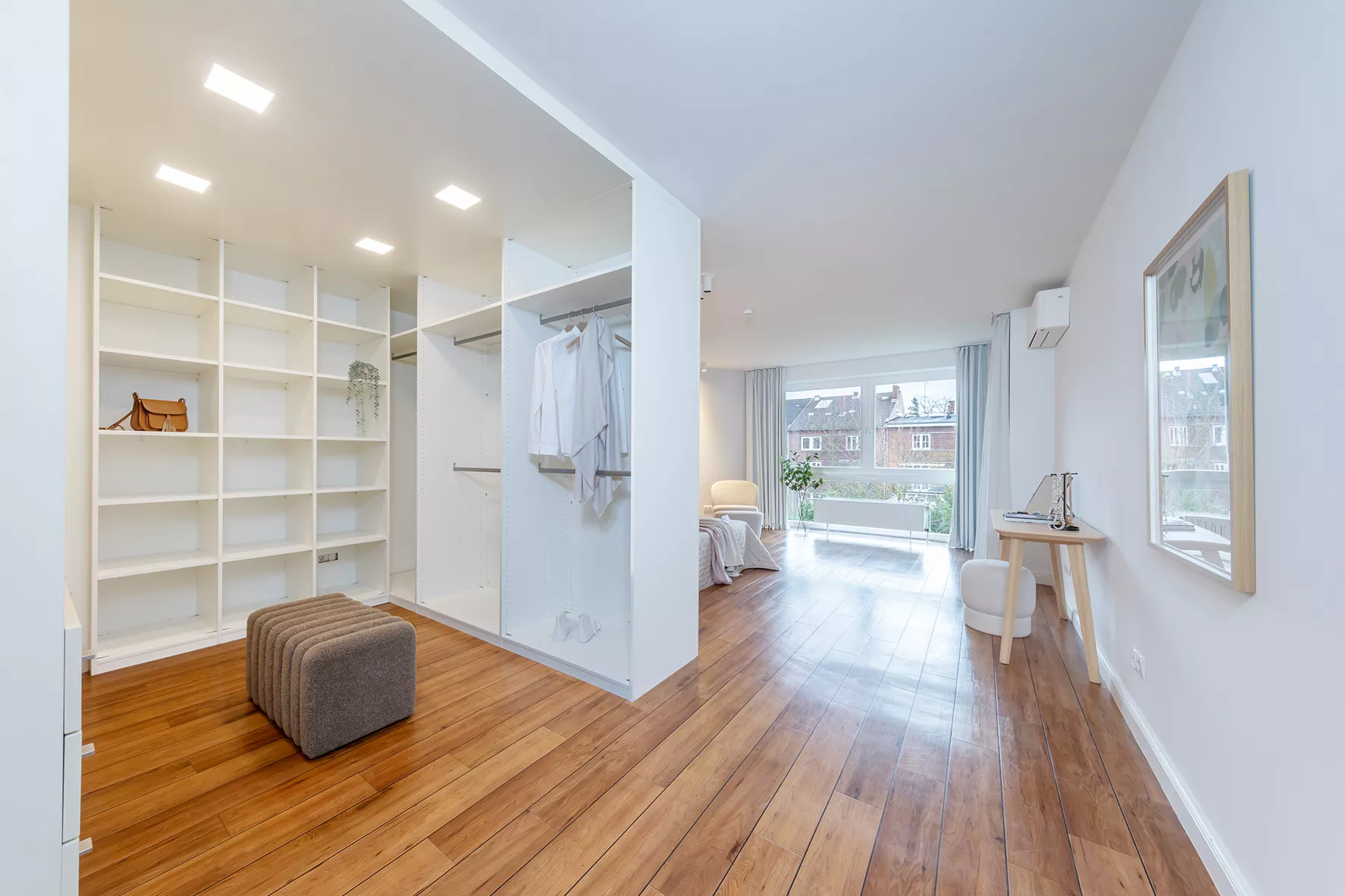 Deckenspots | Amtico in Holzoptik | Teilweise Fußbodenheizung | Klimaanlage als Splitgerät | Ankleide