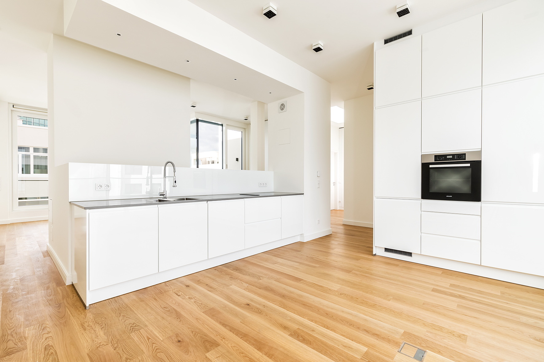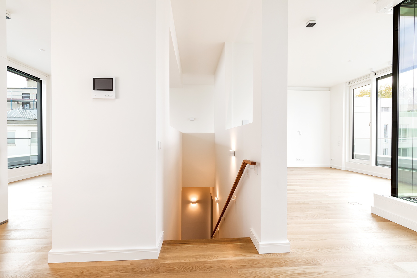 | Helles Eichenparkett | Zwei Dachterrassen und ein Balkon | Lebensqualität per Swipe - Beleuchtung, Raumtemperatur und Lüftung über Apps steuerbar