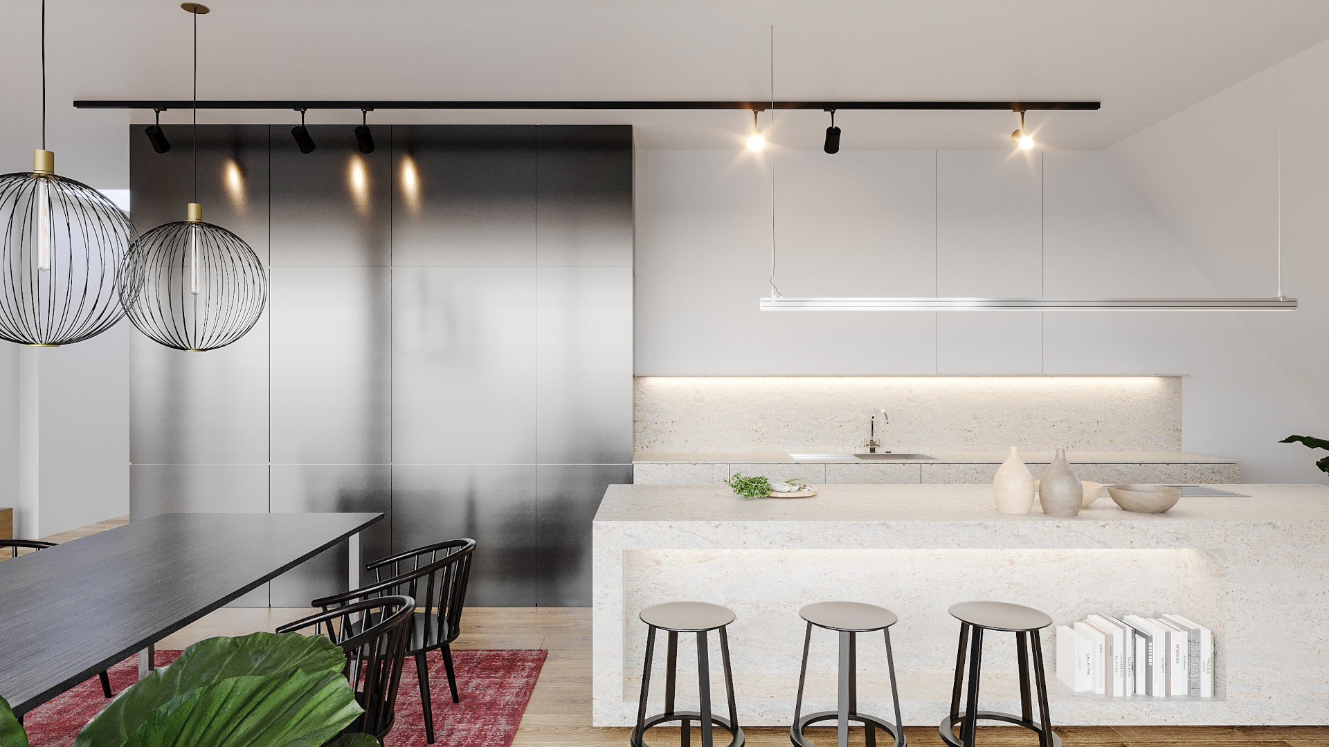 Die Dachterrassenflächen sowie die Loggia sind zu 50% in der Wohn- und Nutzfläche berücksichtigt. Die Küche wird mit Anschlüssen geliefert.