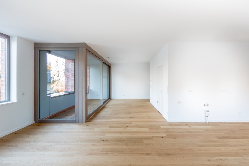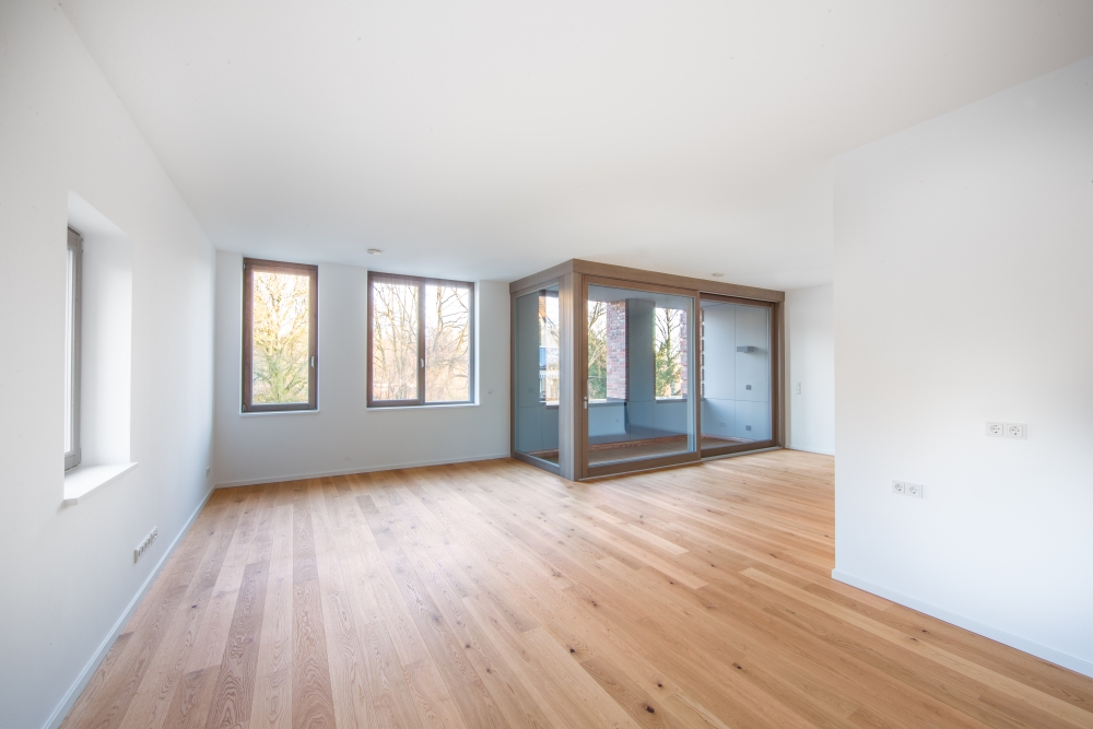 Offen gestalteter Wohn-, Ess- und Kochbereich | Ca. 2,80 m hohe Decken | Be- und Entlüftungsanlage | Fußbodenheizung | Ostloggia | Gemeinschaftsgarten