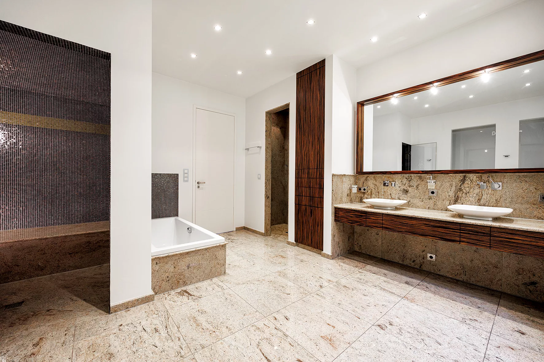 | Klimatisiertes Schlafzimmer und exklusive Bäder – eines mit Dampfsauna